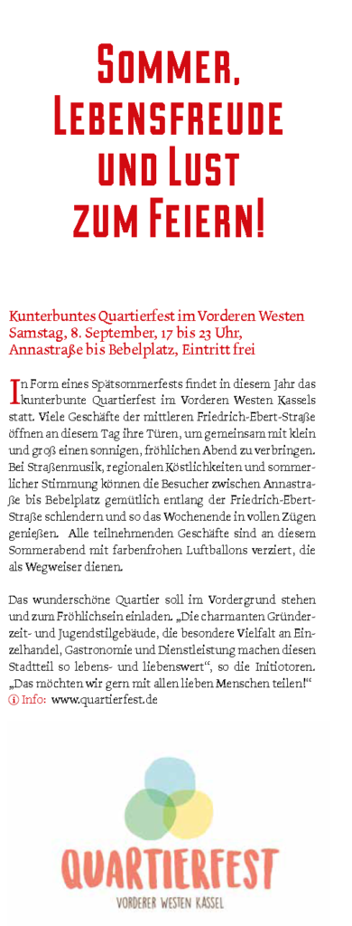 8. September: Quartiersfest vom Anna- zum Bebelplatz
