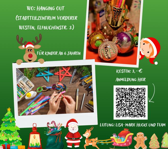 im Hanging Out, Stadtteilzentrum Vorderer Westen (neben Friedenskirche, Elfbuchenstr. 3) Kostenbeitrag: 3 Euro. Wir bitten um Anmeldung. Leitung: Lisa-Marie Hucke und Team